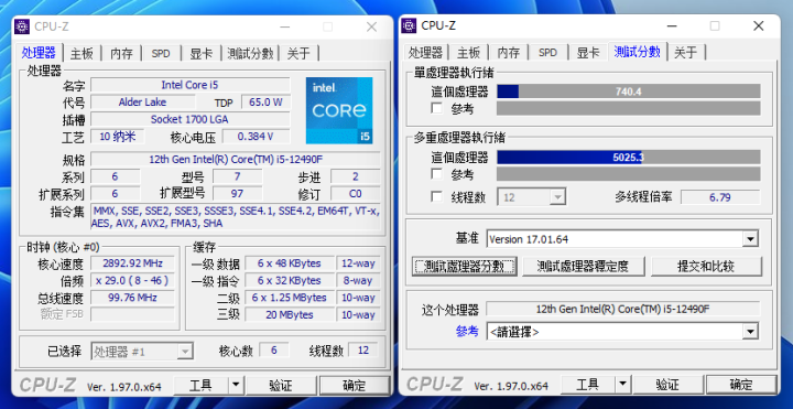 Intel酷睿i5-12400F与12490F