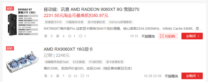 或者两千+的英伟达RTX5060、AMD RX9060XT。